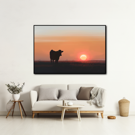 Tableau Vache et Coucher de Soleil